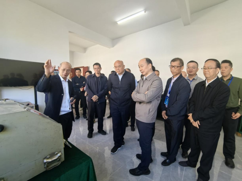 ▲与会人员在玉林地震监测中心站调研交流防震减灾工作。