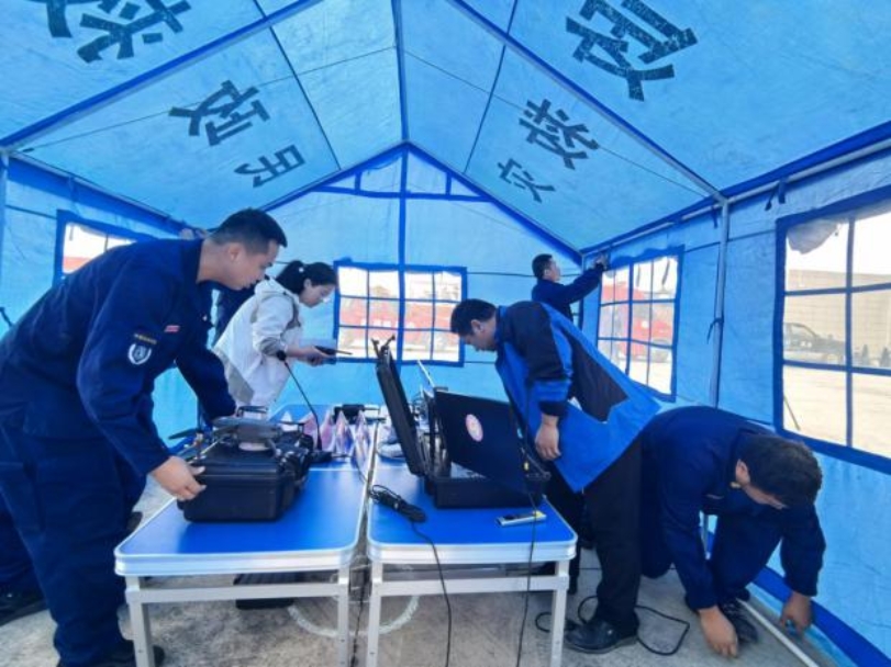 比武紧扣实战需求,设置五大核心实操科目,包括前方应急指挥部的搭建、移动通信设备的使用、无人机操控及回传、便携式设备视频回传至应急管理“一张图”平台、前方指挥部视频会议连通等5个项目。