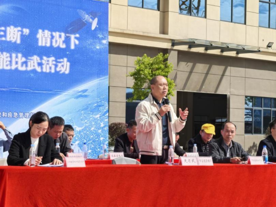 在极端天气与灾害突发多发,“断路、断网、断电”(以下简称“三断”)场景下的应急通信保障,是打通救援“生命线”的关键环节。为全面检验全市应急管理系统实战能力,锤炼队伍在极端条件下的通信组网、灾情侦察与指令传递硬功夫,11月21日,玉林市应急管理系统在玉林市能匠之家技能培训学校开展2025年玉林市“三断”情况下应急通信保障技能比武活动。全市8个各县(市、区)应急管理局代表队参加了比赛,玉林市应急管理局副局长史习武现场观摩指导。