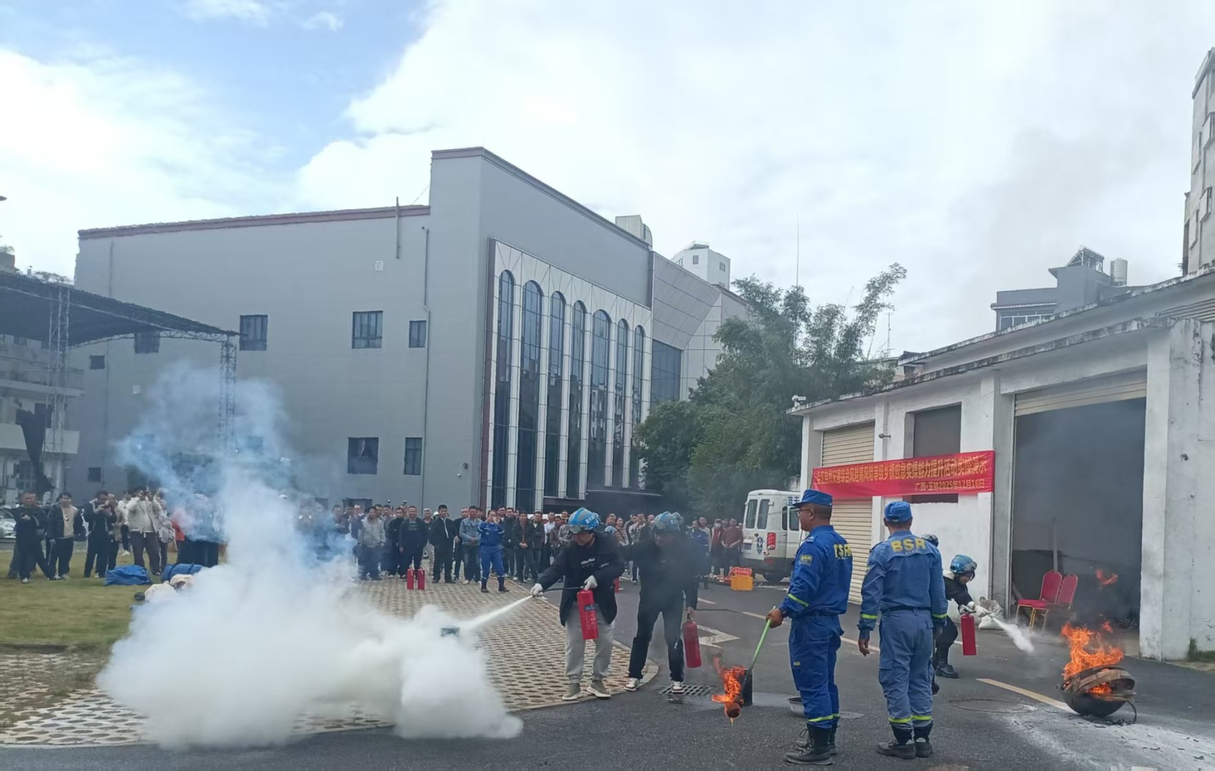 在实操环节,参训学员分组开展的模拟演练科目涵盖了多个关键应急救护与安全技能,具体包括模拟预警发布、群众紧急转移、止血包扎、海姆立克急救法、骨折固定、伤员转运、心肺复苏(CPR)、AED使用、灭火器规范使用以及初期火灾扑救等。通过“手把手”教学和“面对面”交流,进一步规范了基层应急处置流程,提升了镇村一线干部在复杂灾害场景下的实战能力和协同配合水平。