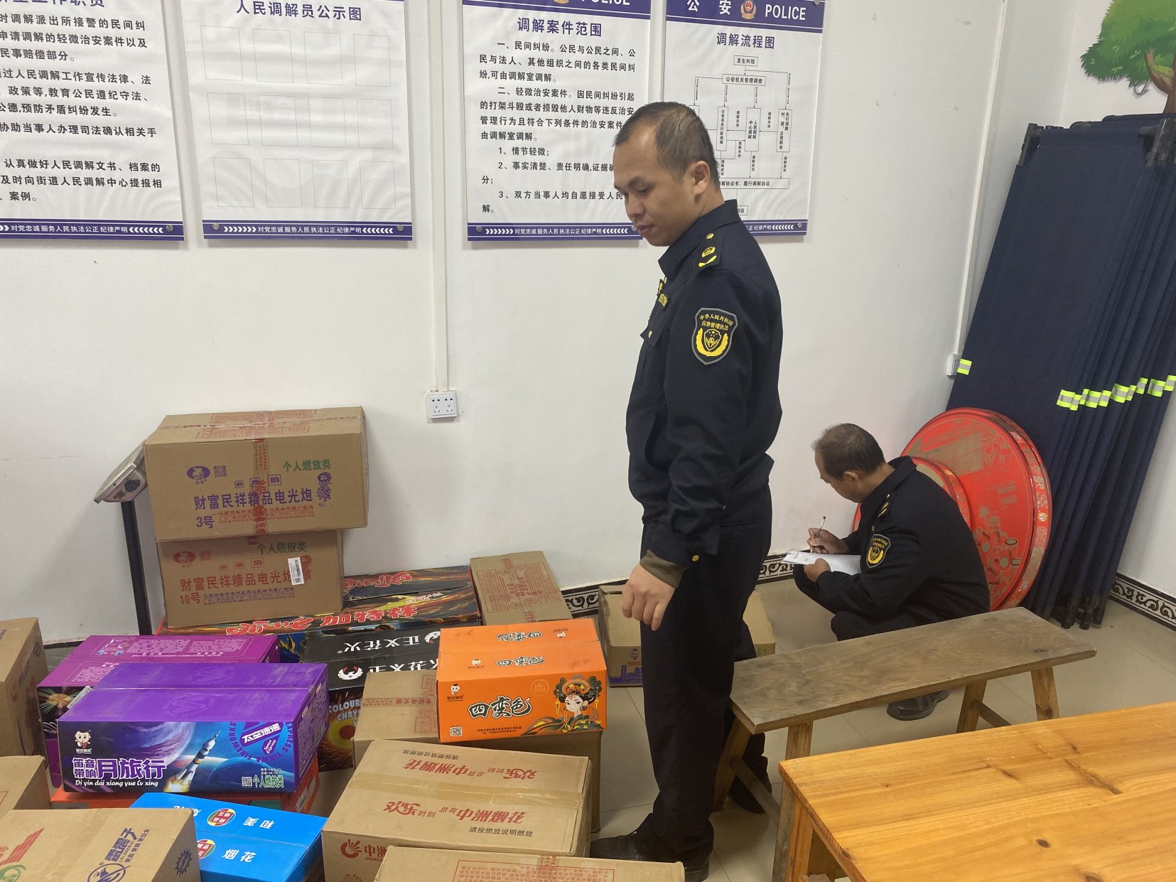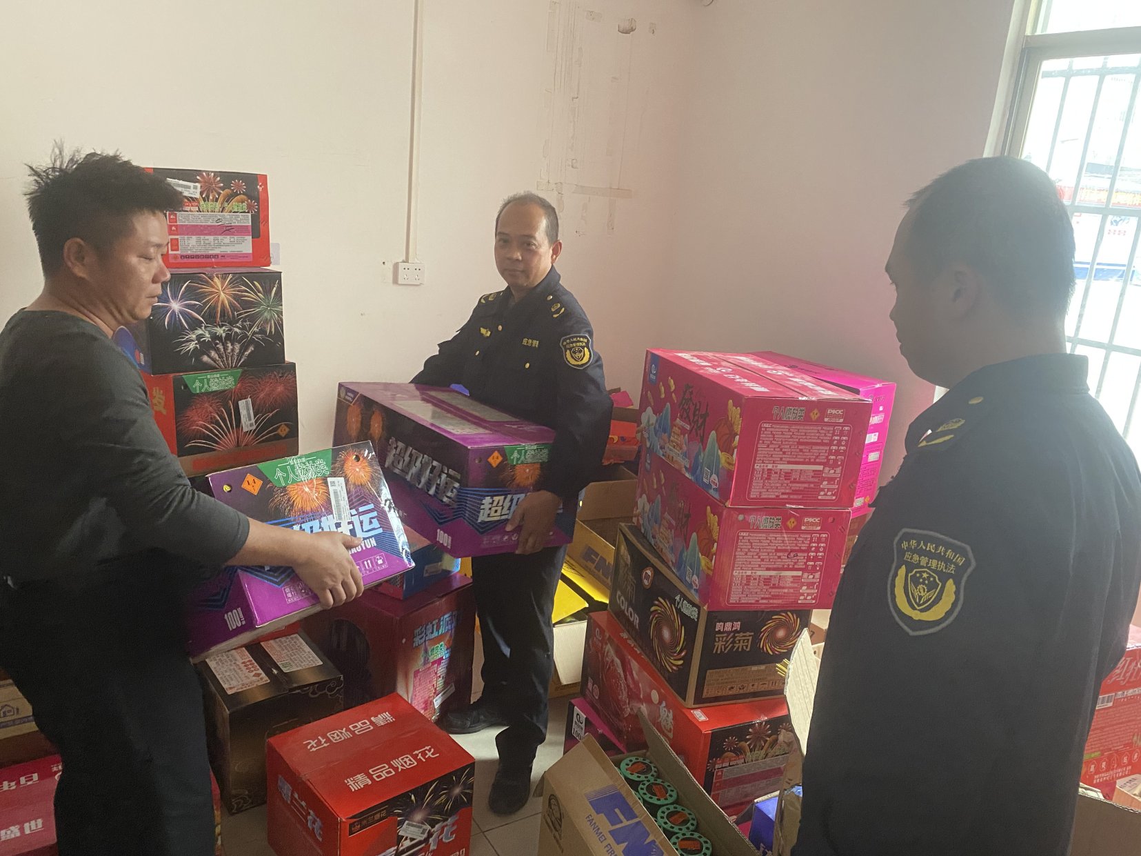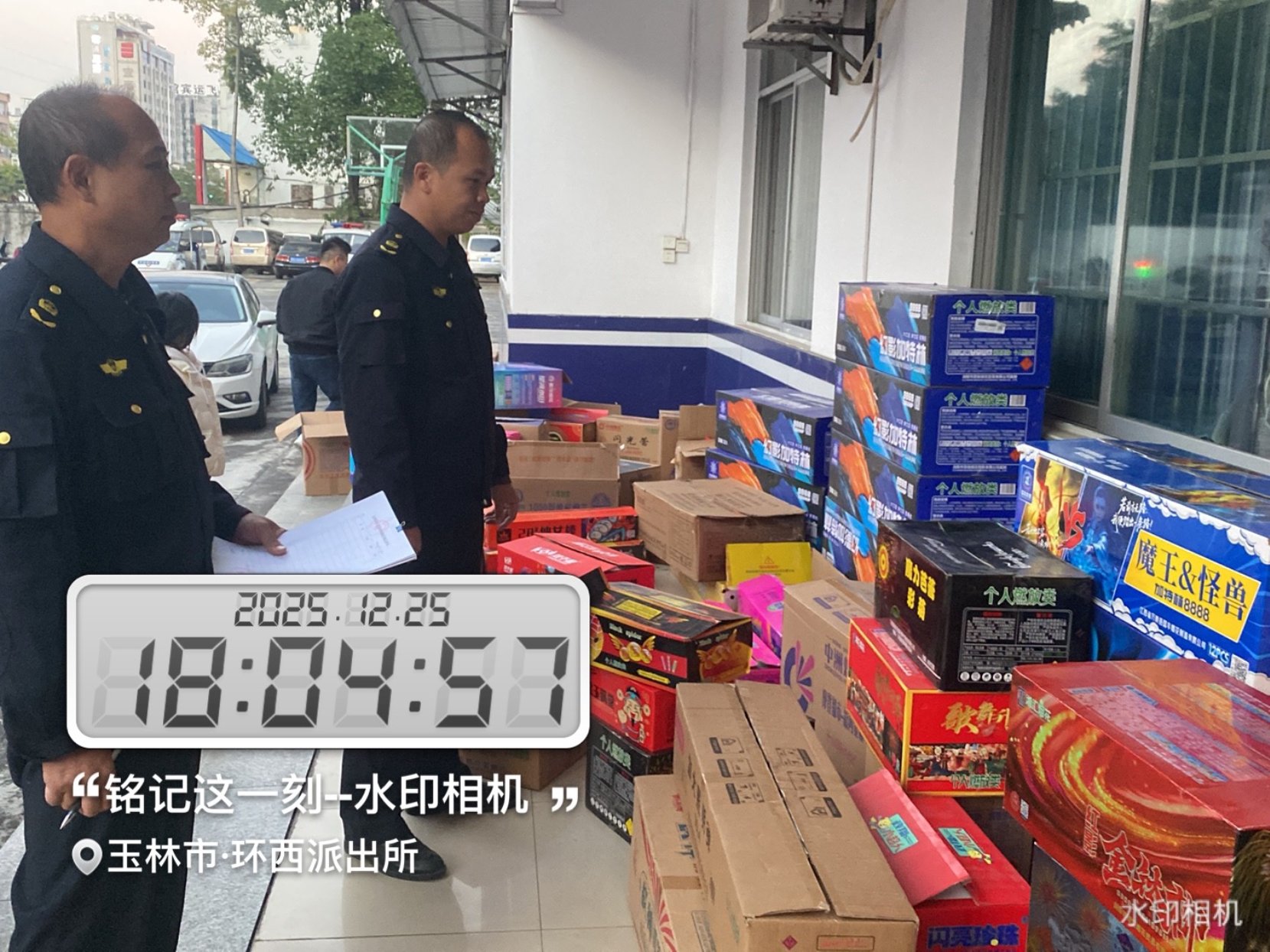 案例7:2025年12月25日,玉州区应急管理局治爆大队联合玉林市公安局玉州分局环西派出所开展打击非法储存烟花爆竹行为,并接收相关查获的非法储存的烟花爆竹,经现场清点,各类零散烟花48箱(件),已暂存原富海烟花爆竹公司仓库,择期再进行安全销毁。