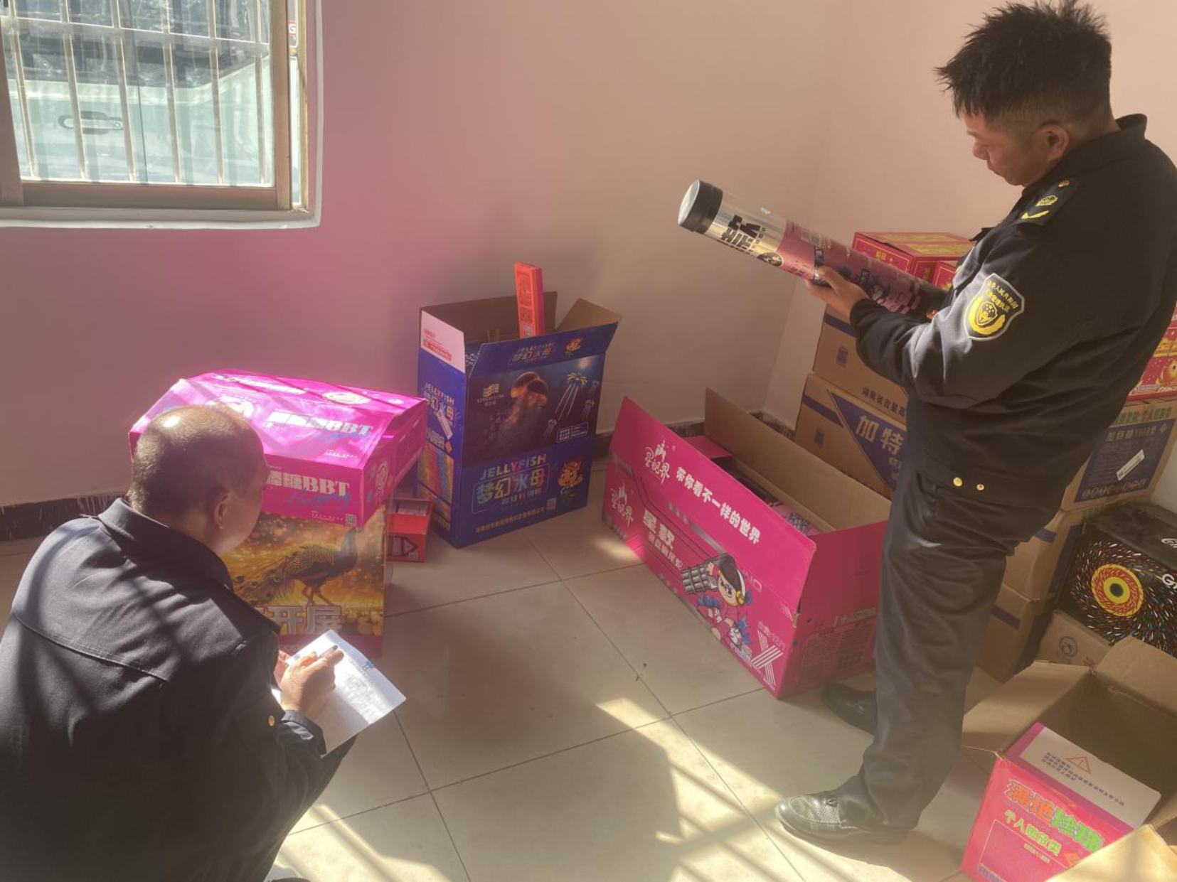 案例六:非法经营、储存烟花爆竹,44箱(件)非法产品被查