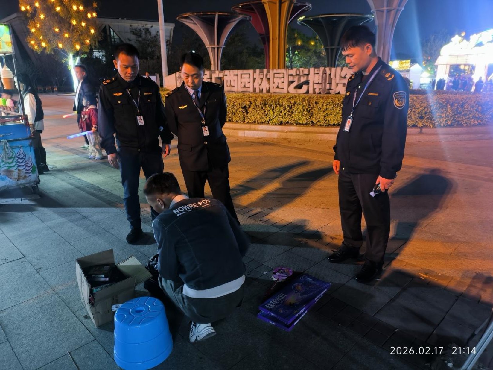 2月17日,玉林市应急管理局在玉林市园博园发现并打击一起非法销售烟花爆竹点。